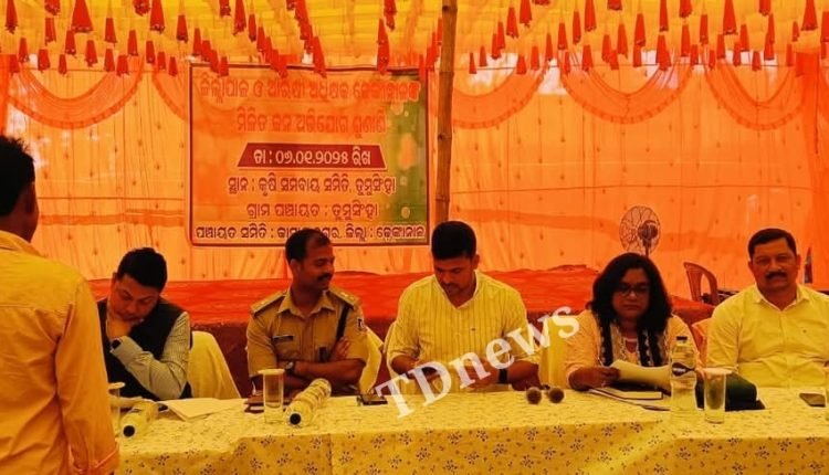 ଢେ଼ଙ୍କାନାଳ ଜିଲ୍ଲା କାମାକ୍ଷାନଗର ବ୍ଲକ ତୁମୁସିଙ୍ଗା ଗ୍ରାମ ପଞ୍ଚାୟତ କାର୍ଯ୍ୟାଳୟ ଠାରେ ସୋମବାର ଦିନ ୧୧ଟା ୩୦ ମିନିଟ୍ ସମୟରେ ଜିଲ୍ଲାପାଳ ଓ ଆରକ୍ଷୀ ଅଧିକ୍ଷକଙ୍କ ମିଳିତ ଜନ ଅଭିଯୋଗ ଶୁଣାଣି ଶିବିର ଅନୁଷ୍ଠିତ ହୋଇଯାଇଛି ।ଏହି କାର୍ଯ୍ୟକ୍ରମର ମୁଖ୍ୟ ଉଦ୍ଦେଶ୍ୟ ହେଉଛି ରାଜ୍ୟସରକାରଙ୍କ ସମସ୍ତ ବିଭାଗ ପଞ୍ଚାୟତସ୍ତରରେ ପହଞ୍ଚି ଲୋକମାନଙ୍କର ପ୍ରତ୍ୟେକ ସମସ୍ୟାର ସମାଧାନ କରିବ । ଅନୁଷ୍ଠିତ ଶିବିରରେ ଢେ଼ଙ୍କାନାଳ ଜଲ୍ଲାପାଳ ସୋମେଶ କୁମାର ଉପାଧ୍ୟାୟ ଓ ଜିଲ୍ଲା ଆରକ୍ଷୀ ଅଧିକ୍ଷକ ଅଭିନବ ସୋନକର,ବନଖଣ୍ଡ ଅଧିକାରୀ ସୁମିତ କର, କାମାକ୍ଷାନଗର ତହସିଲଦାର ପ୍ରିୟବ୍ରତ ଦାସ,ଆସିଷ୍ଟାଣ୍ଡ ଇଞ୍ଜିିୟରି, ପଞ୍ଚାୟତ ଡେଭଲମେଣ୍ଟେ ଅଫିସର, ତୁମୁସିଙ୍ଗା ଗ୍ରାମପଞ୍ଚାୟତର ସରପଞ୍ଚ ପ୍ରିୟଙ୍କା ସାହୁ ପିଓ ଗୋବର୍ଦ୍ଧନ ସାହୁଙ୍କ ସମେତ ବିଭିନ୍ନ ପଞ୍ଚାୟତରୁ ଆସିଥିବା ସରପଞ୍ଚ ସମିତି ସଭ୍ୟ ଅନ୍ୟ ଅଧିକାରୀମାନେ ଉପସ୍ଥିତ ରହି ଅଞ୍ଚଳବସୀଙ୍କ ବିଭିନ୍ନ ବ୍ୟକ୍ତିଗତ ଗୋଷ୍ଟିଗତ ସମସ୍ୟା ସମ୍ପର୍କରେ ୧୫୦ଟି ଅଭଯୋଗର ଶୁଣାଣୀ କରିଥିଲେ ।